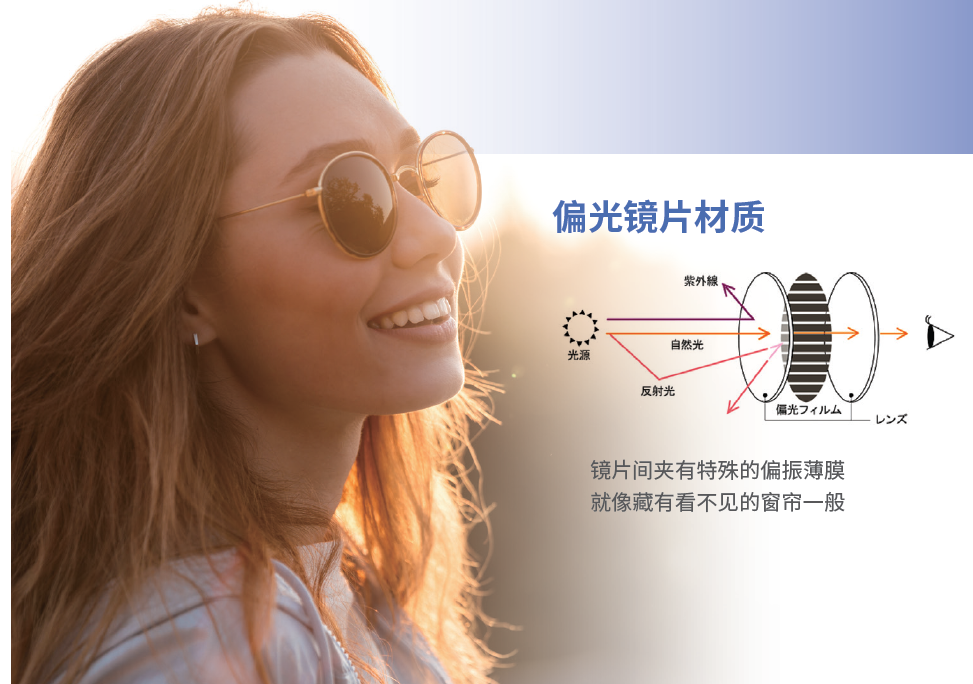 *偏光效果受溫度、紫外線強度和鏡片材料所影響。鏡片顏色較深的太陽鏡進入隧道、室內(nèi)停車場等較暗的場所時,由于光線不足造成視物困難,十分危險,所以請不要在這些場所使用。駕駛敞篷車、摩托車、雪地車等沒有頂棚的交通工具、以及滑雪等戶外運動時,請結(jié)合更多專業(yè)的防護裝備一起使用。